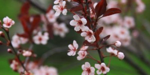 Terrific tree with bronze-purple leaves when young, then dark purple mature foliage. Pale pink to white blooms. Bears dull purple fruit. Useful in all areas of landscape: lawn, patio, terrace.